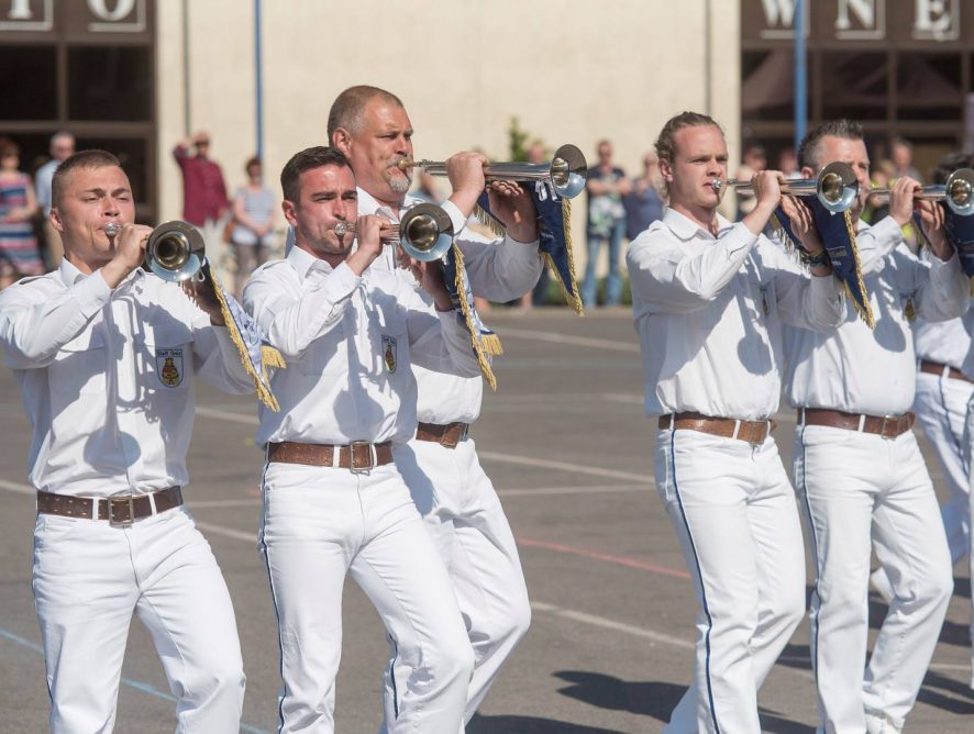 10 Vereine aus 3 Nationen nahmen zur Eröffnungsveranstaltung Aufstellung. Der Wettbewerb, unter der Federführung der WAMSB (World Association of Marching Show Bands), konnte nun gestartet werden. Eingebettet war die gesamte Veranstaltung anlässlich des Festivals ,,Alte Kameraden“. Es erinnert an den Komponisten Carl Teike aus dem damaligen Landsberg/Warthe.